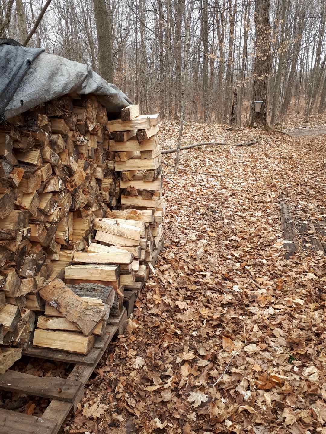 Our forest, including the sugar bush, is certified by the Forest Stewardship Council. We use good old fashioned pails (well, not THAT old fashioned!) and fetch the sap with buckets by hand, walking along lovely trails. We get the hardwood to fire the stove from our forest. Rick and Suz bring in the softwood from their neck of the woods just minutes away.