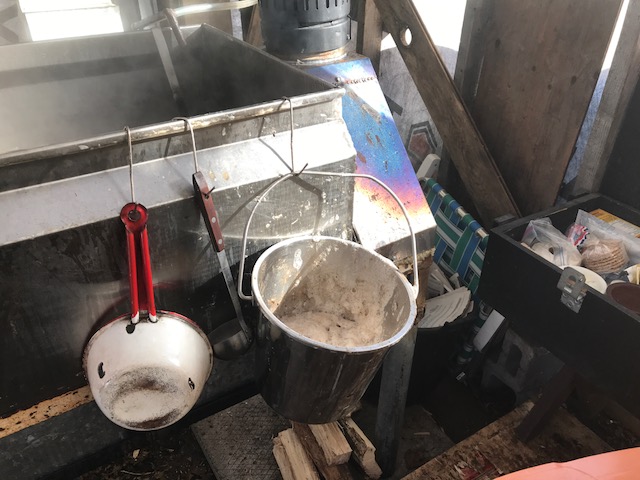 Our maple syrup comes from our sustainably managed, Forest Stewardship Council certified forest. It is boiled lovingly and painstakingly for hours and hours in our little sugar shack, built into the woods, by our good friends, Rick and Suzanne. We feed the stove with wood from our own forest and neighbours while the geese return over head and we are blessed with all manner of lovely birds: owls mating, bald eagle circling the shack, the silly nuthatches and ever sweet chickadees.